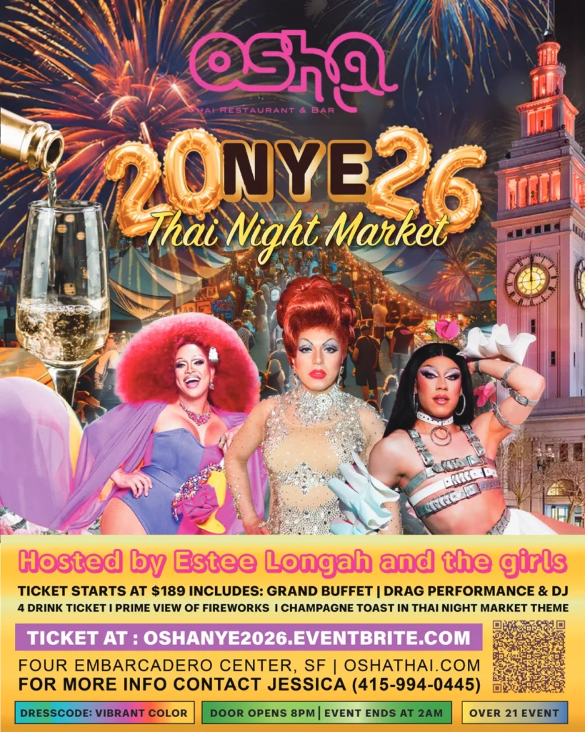 Ring in 2026 on the Embarcadero with a grand buffet, drag performances, complimentary drinks, a champagne toast, and a prime fireworks view.